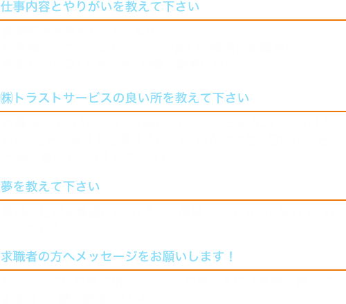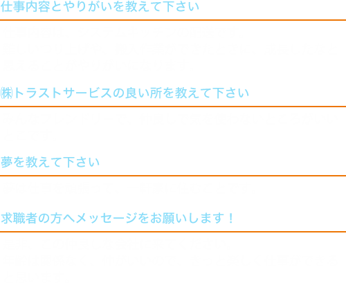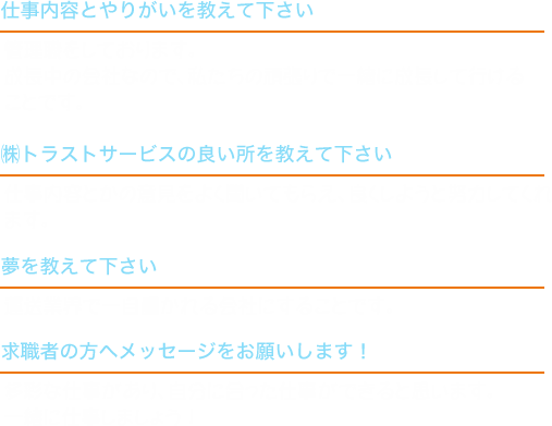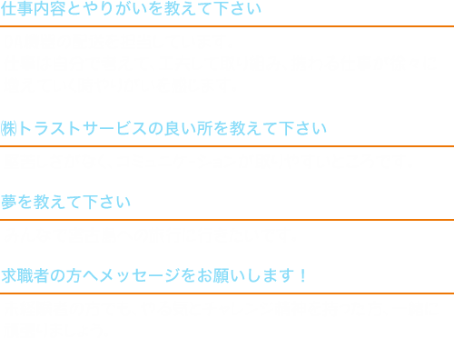 不安な事、疑問な事なんでもご質問下さい。